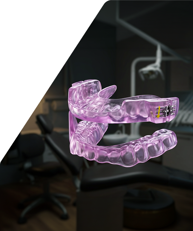 Gently adjusts jaw position to keep the airway open during sleep.